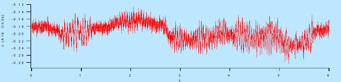Les instabilités apparaissent dans une région limitée de l’espace des paramètres (fig. 4). La dynamique se fait sur deux composantes de nature et d’échelle de temps différentes (fig. 5). La composante basse fréquence, présente sur les deux variables, est stochastique. Le mouvement correspondant se fait essentiellement sur la première bissectrice des faisceaux aller. La composante « haute » fréquence n’existe que sur la position, et son spectre montre un maximum bien marqué.