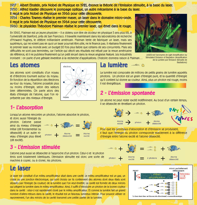 LE LASEREn 1960, on disait que cette invention n'aurait aucune application pratique !...voir aussi: microprocesseurs − écrans plats − graveurs CD/DVD − imprimantes
