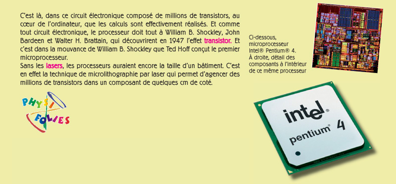 LE MICROPROCESSEURPlusieurs centaines de millions de transistors dans un seul processeur !voir aussi: transistors − lasers